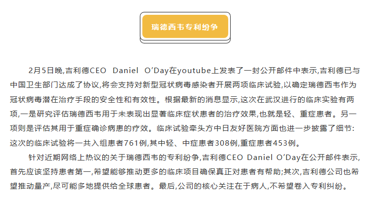 2.1-7工信動態(tài) | 吉利德CEO對瑞德西韋專利紛爭表態(tài)